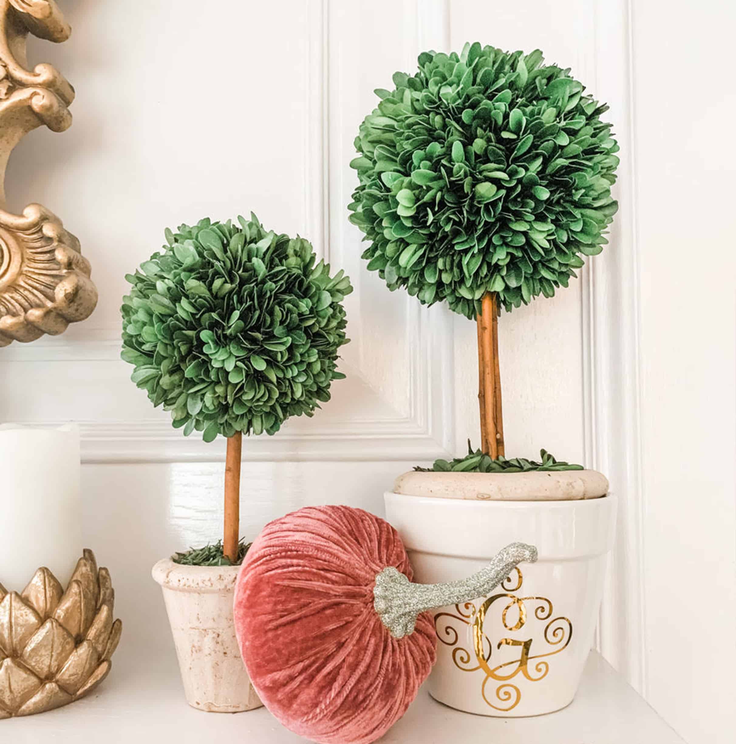 Add decorative elements. This doesn’t have to be complicated. It can be as simple as arranging dried flowers from your garden. I love using a mix of dried hydrangeas. Also, a few high-quality faux floral stems can be mixed in a beautiful arrangement with some high-quality faux greenery.