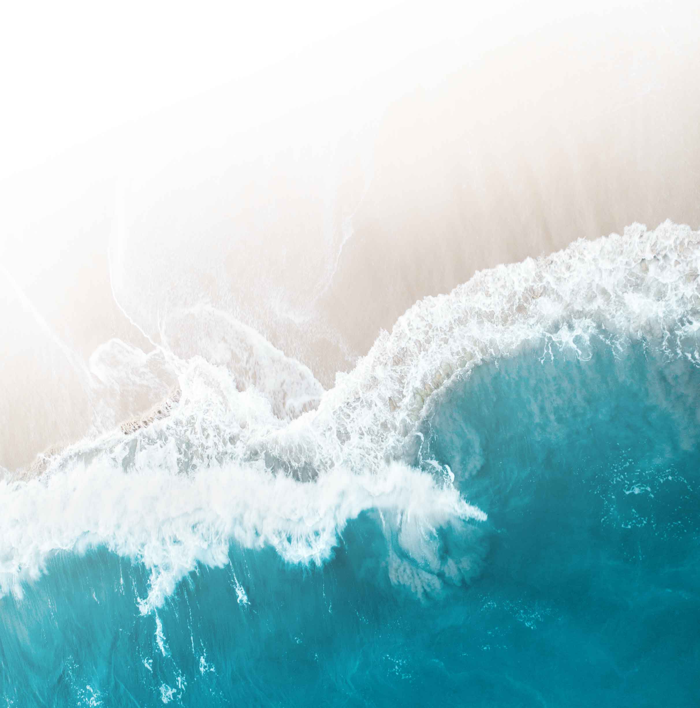 On a small wall and the adjacent living space, we created a fireplace feature with beautiful marble tile. This tied in beautifully to the marble backsplash in the adjacent kitchen and helped this smaller-sized beach cottage look large and more spacious. We also created a laundry room space, with custom cabinetry for storage, and renovated the adjacent bathroom, and the master bedroom and bathroom space. I took my color cues from the beautiful views provided for each room, which created a seamless flow between interior and exterior spaces.