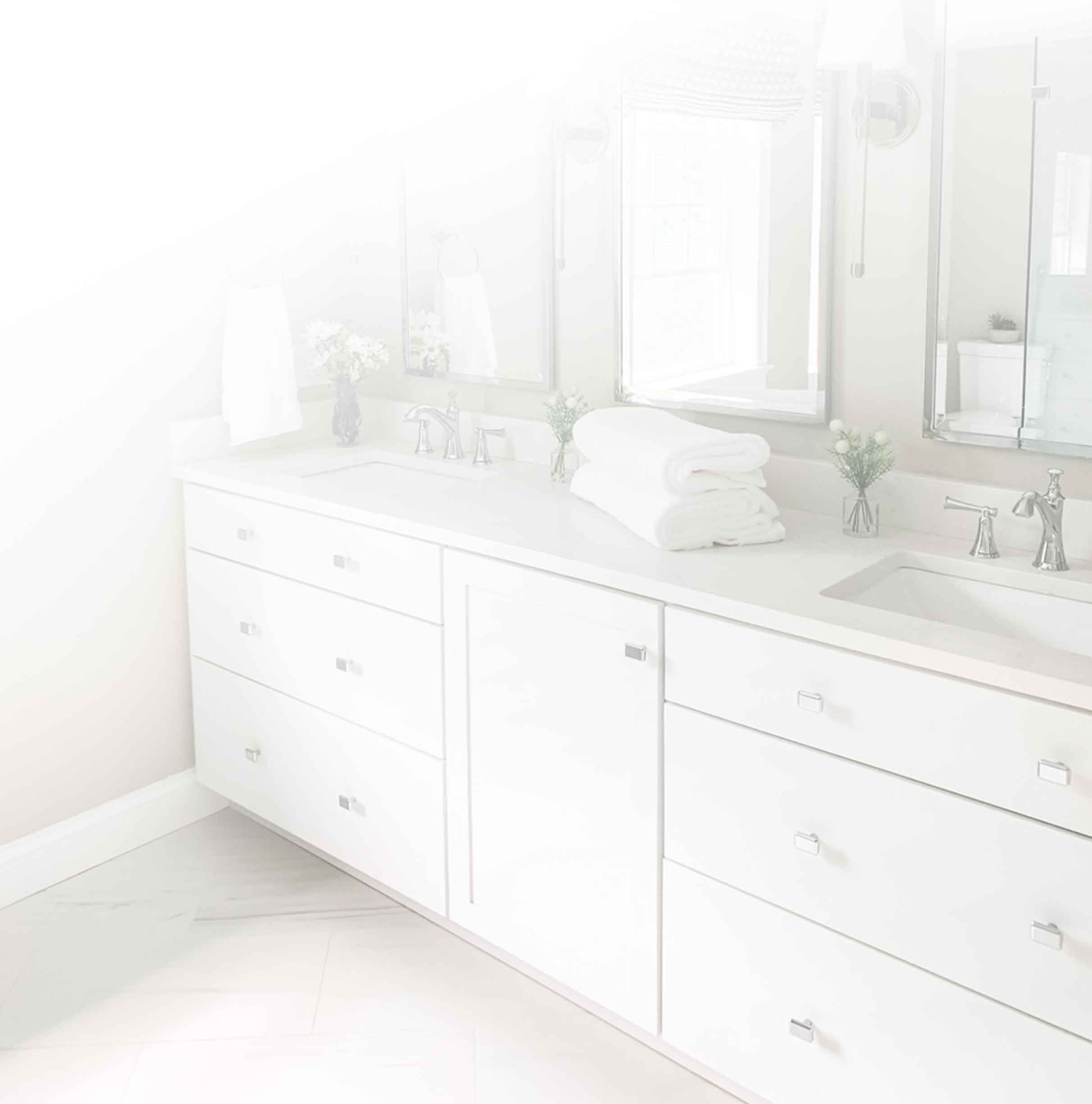 I designed the vanity with plenty of storage and included quartz countertops, under-mounted sinks, beautiful high-quality lighting, and tall mirrors to elongate the space. Custom window treatments here were designed to tie in the custom fabric work in the adjacent bedroom. Of course, my team of highly skilled craftsmen pulled together to implement this design with high-quality artistry, right down to the final details. I am so happy to share this quick video tour to show you the transformation of the space. Check out the before and after. My videographer added in my quick “demo day before video” to show you the transformation.